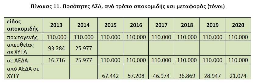 Από τον πίνακα 10, προκύπτει ότι στο τέλος του κύκλου των δύο φάσεων οι ποσότητες προς διάθεση σε ΧΥΤ, είναι 21.074 τόνοι, που αντιστοιχεί σε ποσοστό 19.16 % της συνολικής ποσότητας των ΑΣΑ!!!