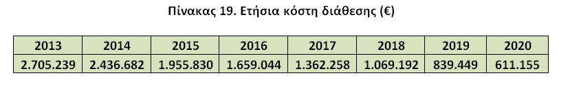 Πίνακας 19. Ετήσια κόστη διάθεσης (€)