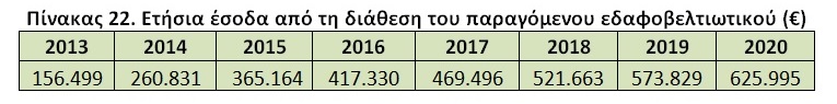 Πίνακας 22. Ετήσια έσοδα από τη διάθεση του παραγόμενου εδαφοβελτιωτικού (€)