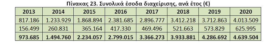 Πίνακας 23. Συνολικά έσοδα διαχείρισης, ανά έτος (€)