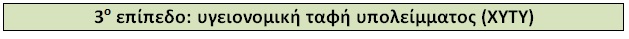 Στο επίπεδο αυτό έχουμε να κάνουμε με τη διάθεση σε ΧΥΤΥ του υπολείμματος των προηγούμενων σταδίων. Οι ΧΥΤΥ, στο πλαίσιο μιας εκτεταμένης εφαρμογής της λογικής της αποκεντρωμένης ολοκληρωμένης διαχείρισης, αφενός θα είναι μικρότερου μεγέθους και, αφετέρου, θα υποδέχονται υπολείμματα με χαρακτηριστικά αδρανών υλικών.