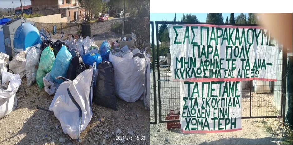 “Η ανακύκλωση κλείνει. Μετά από αυτή την κατάσταση που βλέπετε στην φωτογραφία και η οποία είναι καθημερινό φαινόμενο αποφασίσαμε ότι δεν αξίζει να την κρατήσουμε άλλο ανοιχτή. Λυπόμαστε για τους υποστηρικτές της ανακύκλωσης αλλά μια μερίδα απο γαϊδουρια και αλήτες που έχουν τελείως έλλειψη σεβασμού δεν σέβονται το γεγονός ότι είναι ανακύκλωση που υποστηρίζεται από (δύο μόνο εθελοντές και αυτή τη στιγμή από έναν) και το κάνουν χωματερή απ’ έξω. Αλλά η αλητεία τους είναι τεράστια. Και σίγουρα δεν θα είναι κάτι καλύτερο από στάβλος το σπίτι τους. Σε κάθε ανακύκλωση στον βορρά και στην κεντρική Κέρκυρα υπάρχουν πολλοί εθελοντές και σε πολλές περιπτώσεις έχουν βοήθεια από τον Δήμο. Εμείς παλεύαμε δύο εδώ και δυόμισι χρόνια και τώρα ένας αλλά τελικά η γαϊδουριά μιας μερίδας από λαμόγια και αλήτες καλύπτει το δικό μας φιλότιμο” έγραψε στο facebook ο ένας εκ των δύο εθελοντών.